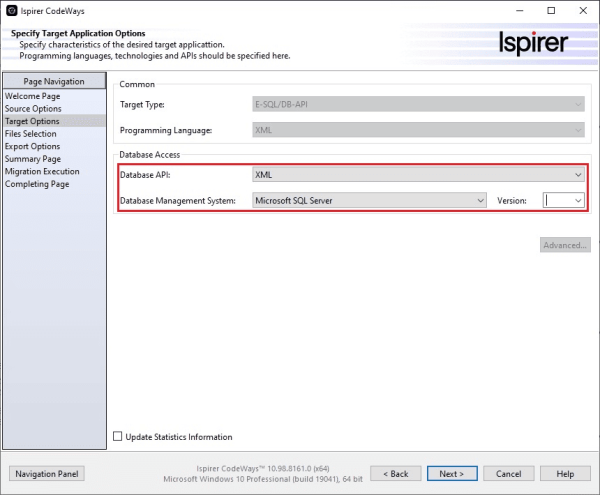 Conversion of Embedded SQL to XML using CodeWays (ora-sql server)