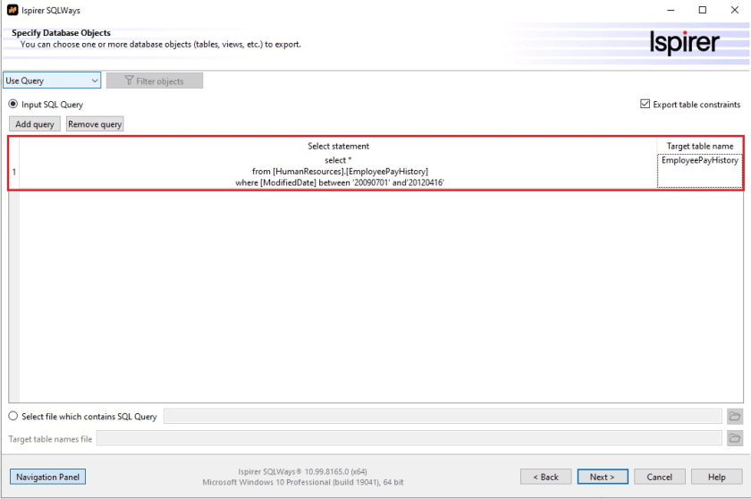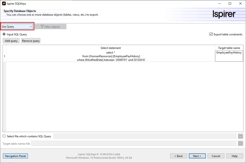 1) On the “Specify Database Objects” page choose “Use Query”: