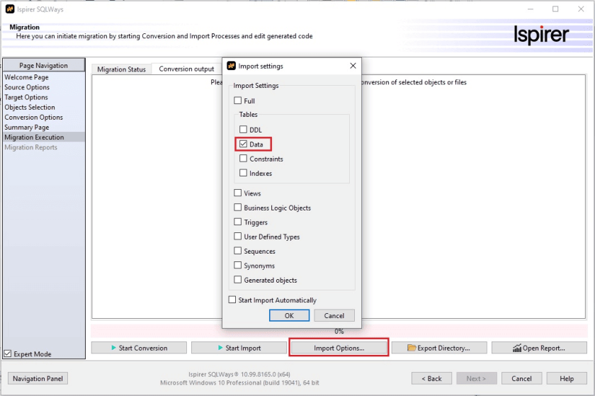 5) Select only “Data” on the Import options page: