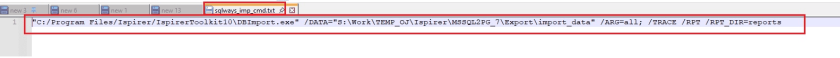 5) Start the conversion. Copy the Import command from file in export directory and add it as the following command to the .bat file: