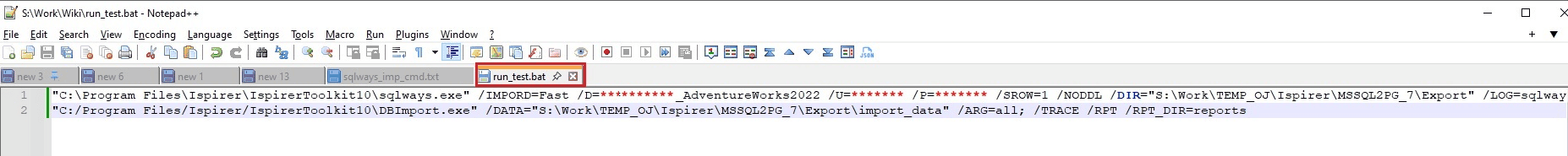 7) Save the .bat file, containing 2 commands - export and import: