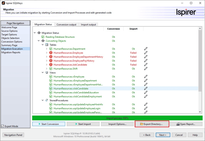 Instructions for starting the migration process using this tool can be found in the Database Migration Guide. However, once the conversion is complete and the converted objects are imported, there are a number of steps you need to take to ensure that the results are correct and the migration was successful. Below is a rough plan for determining the current level of the result, finding errors and checking the results.