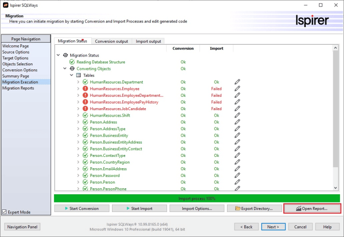 The migration report could also be opened from the “Migration Execution” page by clicking the “Open Report…” button: