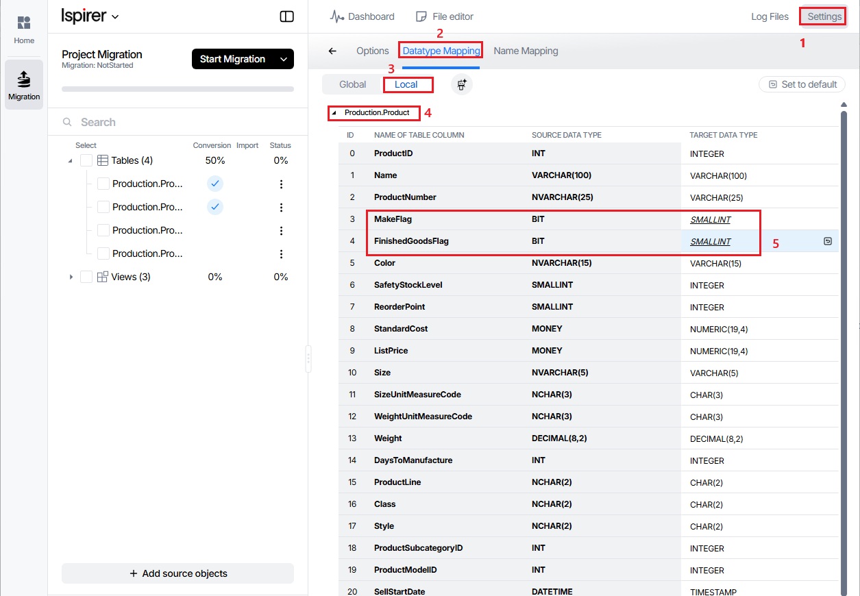 This approach is particularly effective when a data type change must be applied uniformly to eliminate type incompatibilities, avoid implicit conversions, and ensure predictable behavior across the migrated schema. Global mapping simplifies maintenance by allowing data type transformation rules to be defined once and applied consistently throughout the project.