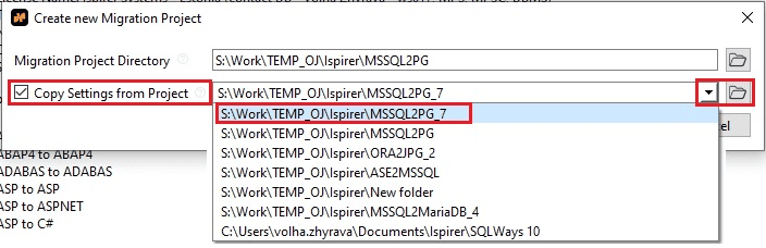 A new migration project will be created with default settings. If you want to clone any existing project with object scope and conversion settings, check the “Copy Settings from Project” checkbox and select the project to copy.