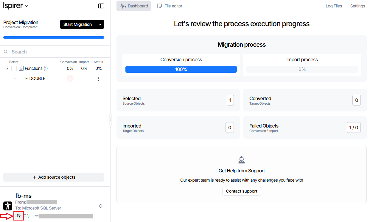 To open the Conversion log, click the Log Files button in the upper right corner.