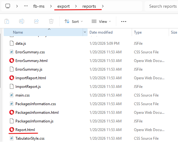 From export folder go to reports.